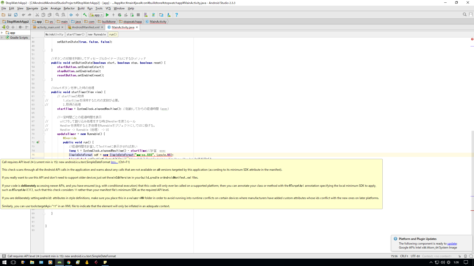 SimpleDateFormatの箇所で画像のようなエラーが出ます。解決方法を教えてください。