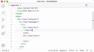 左右のメッセージに三角形を付けて吹き出しを表現していきます。