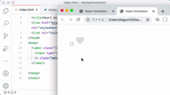 @keyframesとanimationプロパティを使ってハートの動きを作っていきます。