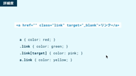 マウスホバーしたとき、フォーカスしたとき、などを表す疑似クラスについて見ていきます。