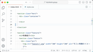 ビューポートの幅が広がったときのヒーローエリアのレイアウトを作り込んでいきます。