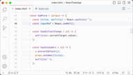 Appコンポーネントでリストに項目を追加する関数を定義していきます。