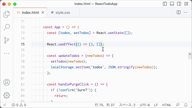 useEffect()を使って、Appコンポーネントが最初に構築されるタイミングでlocalStorageから値を読み込みます。
